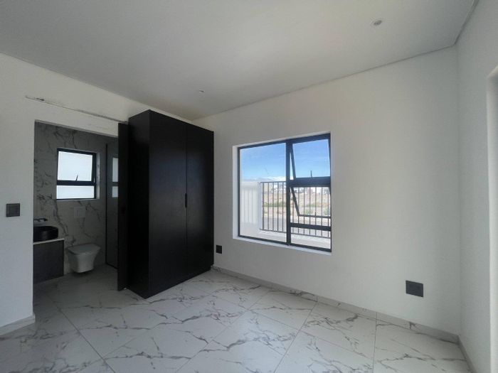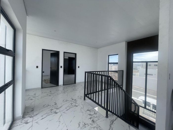 Savour eco-luxury living and entertaining with Table Mountain views in Sandown, Cape Town — heated pool, wrap-around decking and smart-home tech. Four en-suite bedrooms, single garage.