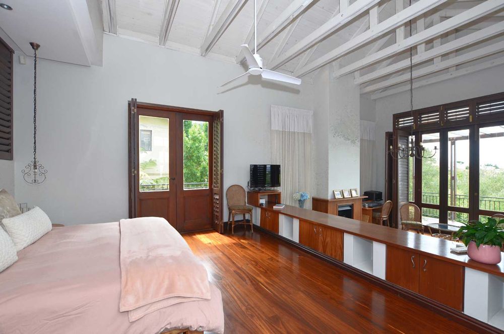 A fully self-contained one-bedroom flatlet with kitchenette and bathroom offers excellent potential for guest accommodation or extended family living.