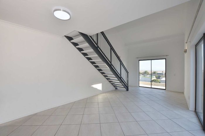 Resort-style penthouse living in Sandown with Table Mountain and city skyline views from a large balcony with built-in braai. Open-plan living; two bedrooms, two bathrooms.