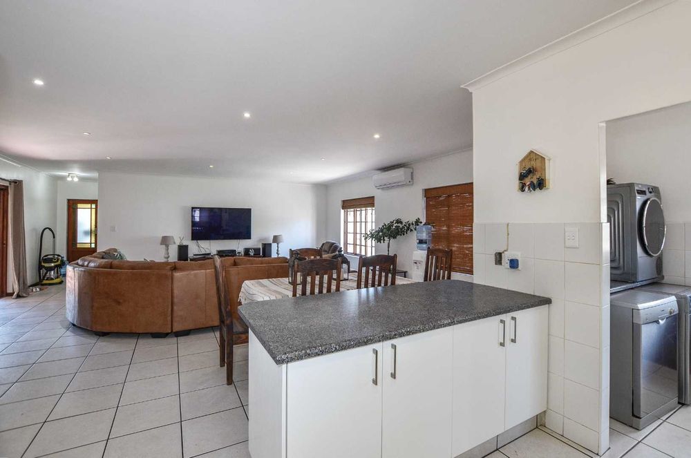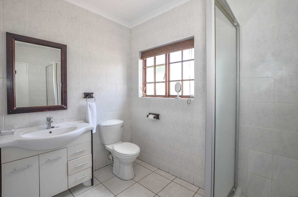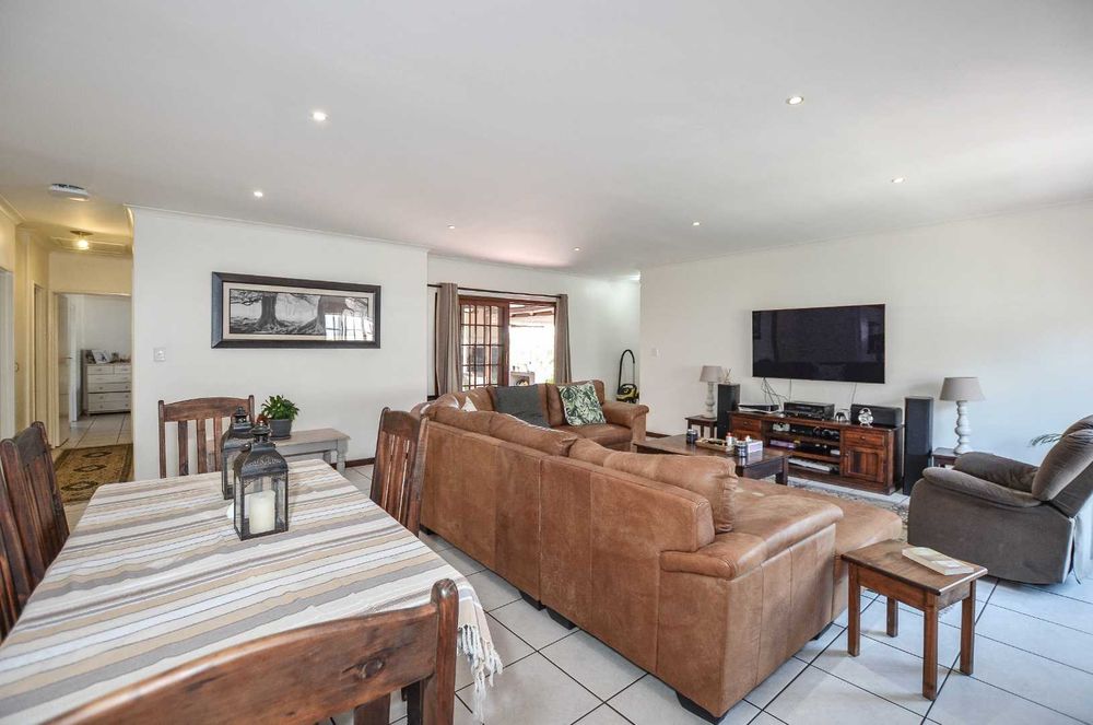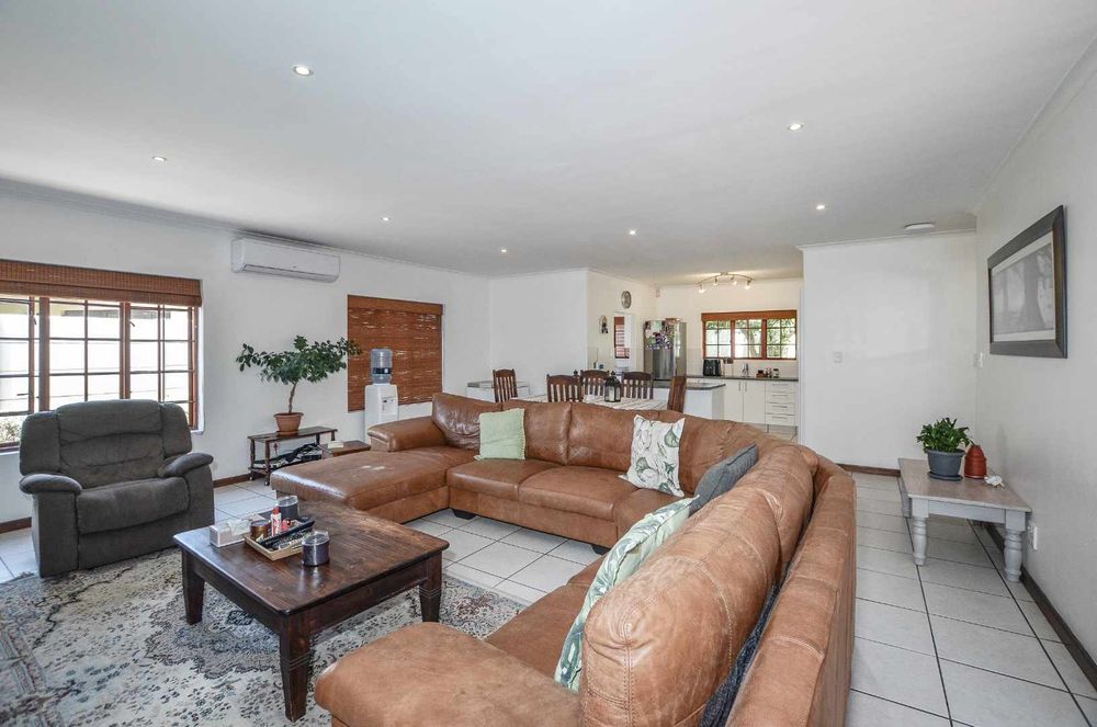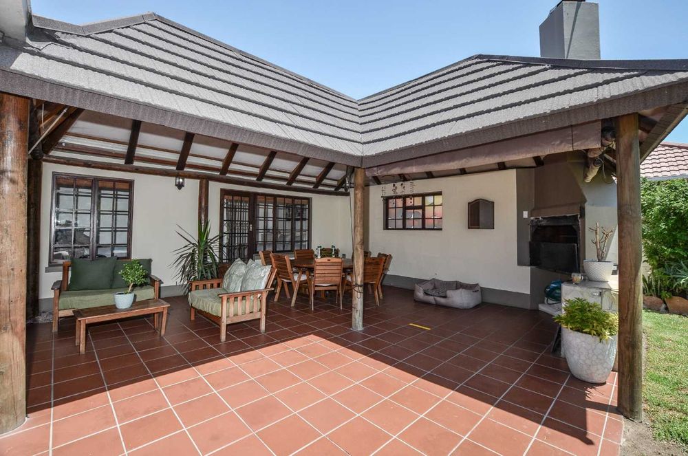 Beautiful and neat family home in quite close with lots of trees. Fully walled with secure driveway gate offering parking for 3 more cars. The home has welcoming foyer leading to a large open plan lounge dining and kitchen area with gas hob. Three bedrooms and 2 bathrooms (family bathroom shower and bath, MES with shower). Entertain to your hearts delight with a large 50m2 covered lapa area with Harvey tile roof, fully wind protected entertainment area with north facing sunny garden and sparkling salt water pool. Self cleaning chlorinator. Other extras include: backup power system with lithium 5kw battery, borehole producing 4000l of water per hour. Aricon 30 000 BTU. Irrigation system. Automated double garage with extra storage space in ceiling.