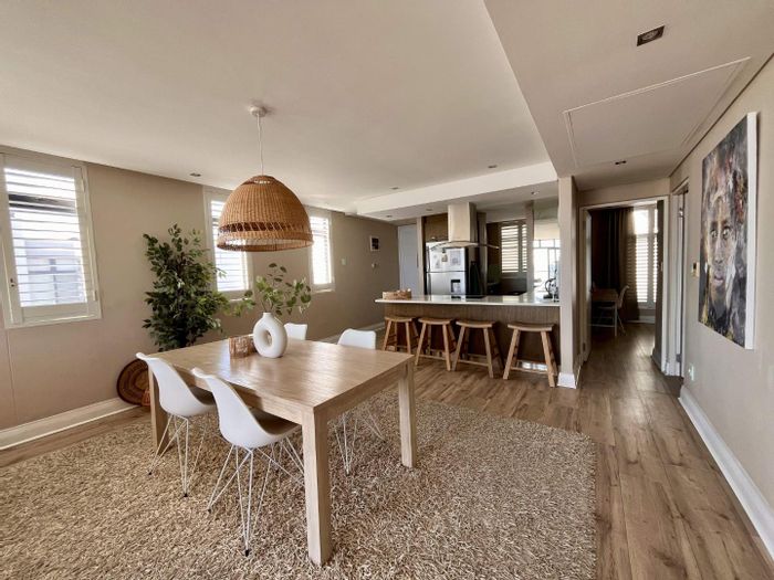 Beachfront living on Blouberg's lively Big Bay promenade, ideal for surfers and seaside dining; wraparound balcony with ocean and Table Mountain views. Two bedrooms, two bathrooms, two secure parking bays.