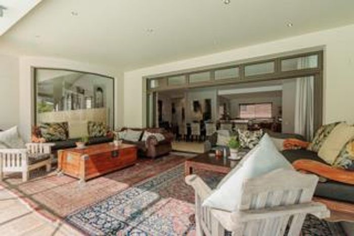 Coastal luxury in Sunset Village with direct Sunset Beach access, panoramic Table Mountain views and a 15m mosaic lap pool; dual plots, solar power and five-car garage.