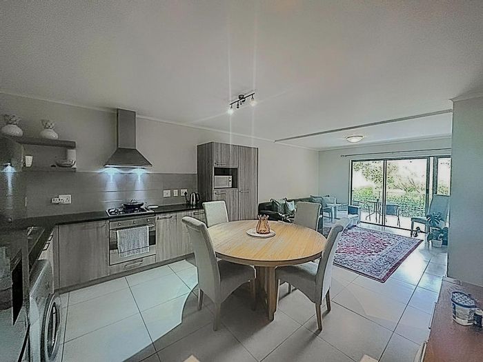 Relaxed living in Mayfair security complex, minutes from Canal Walk and Century City amenities. Northwest balcony overlooks gardens and water feature; open-plan kitchen with gas hob. Two bedrooms, two bathrooms.
