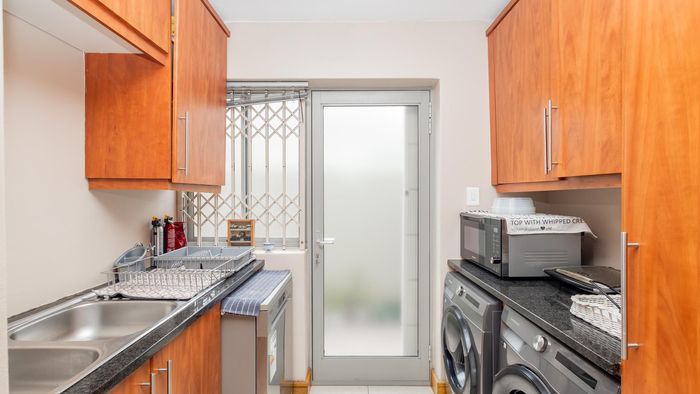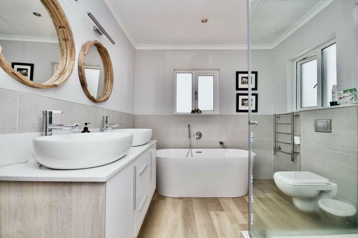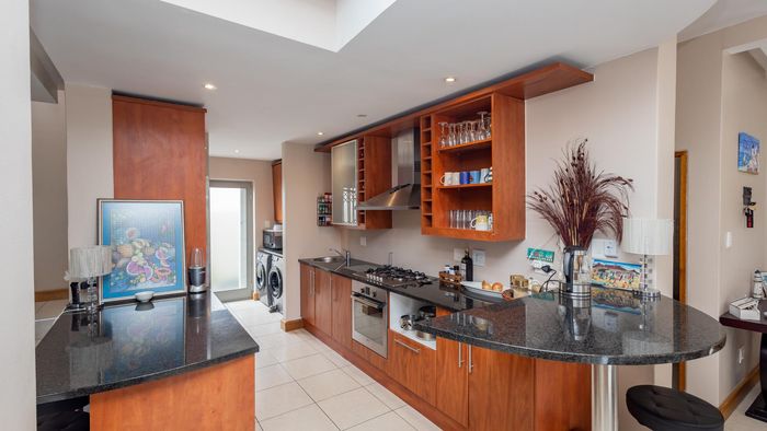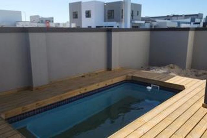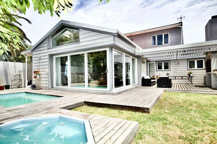Relaxed coastal living in West Beach, Blouberg — poolside entertaining with covered braai and separate one-bedroom flatlet. Five bedrooms, three bathrooms, double garage.