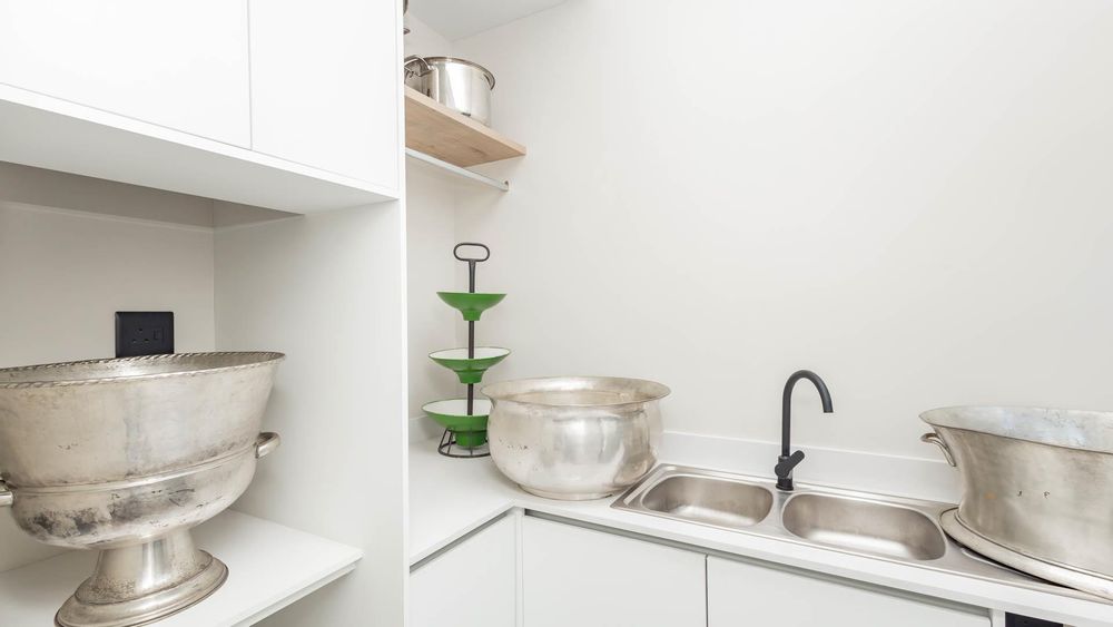 A hidden scullery with two plumbing points ensures a clutter-free kitchen while providing ample space for appliances.
