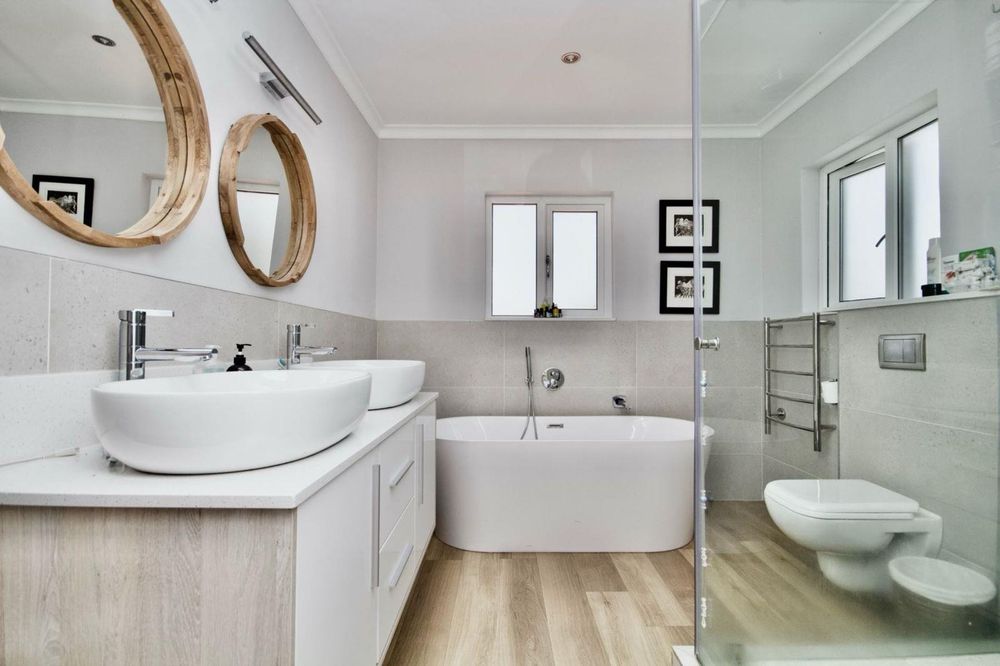 Upstairs is the main accommodation, 3 bedrooms with a very large main en-suite, and the two additional bedrooms sharing a bathroom. The seaside finishes have been continued upstairs and a balcony completes the spacious main bedroom and one guest room. The latter 2 rooms get loads of afternoon sun for warm winter feeling.