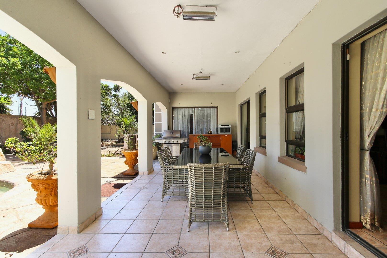 This warm and beautiful family home overlooking the vlei is in sought after Sunset Beach, just a short walk to the world-famous kite surfing beach. It's a very solid and impressive well-built home, very large and offers more accommodation than you can wish for. Fully walled with electric fencing and a remote gate, offering secure parking for 3 extra vehicles. A tranquil koi pond welcomes you at the front gate. The garden is lush with a large rock pool offering an extra jacuzzi and water feature. Large balconies both down and upstairs (with heaters), calls for lots of entertainment or just lazing on the porch to relax. The house has just been freshly painted.