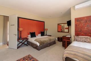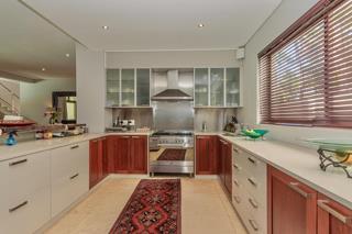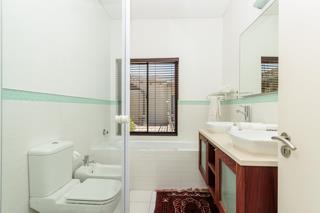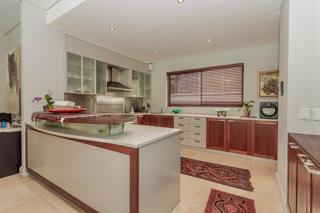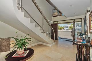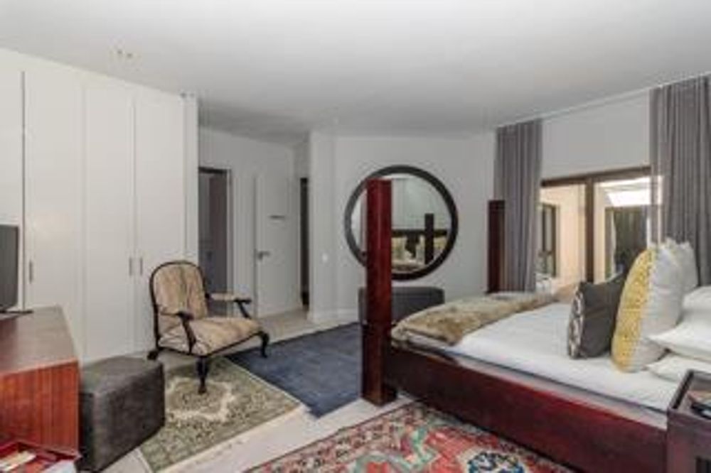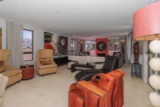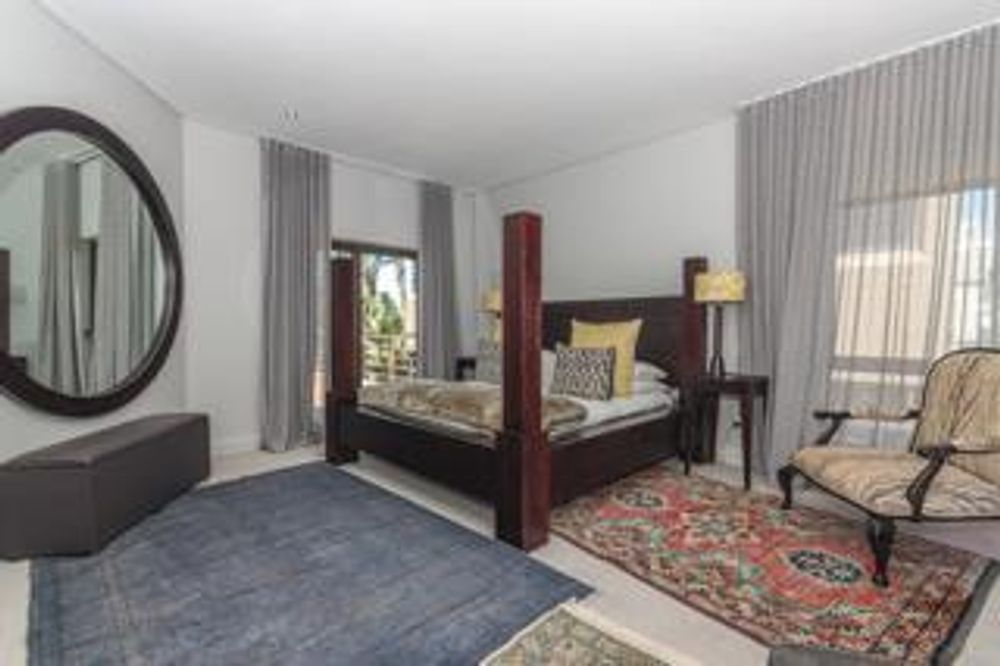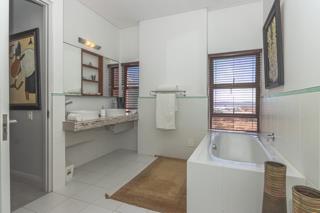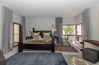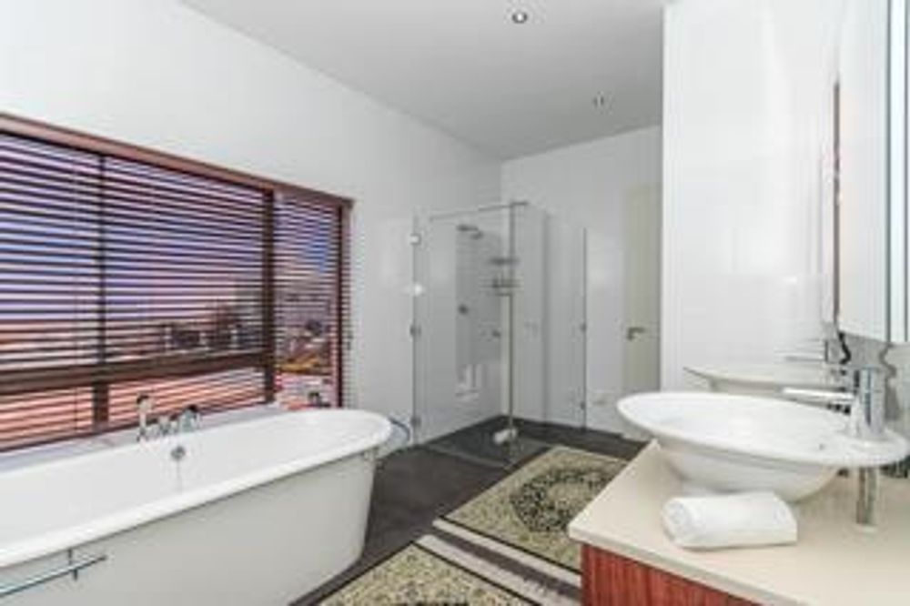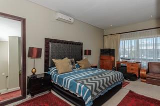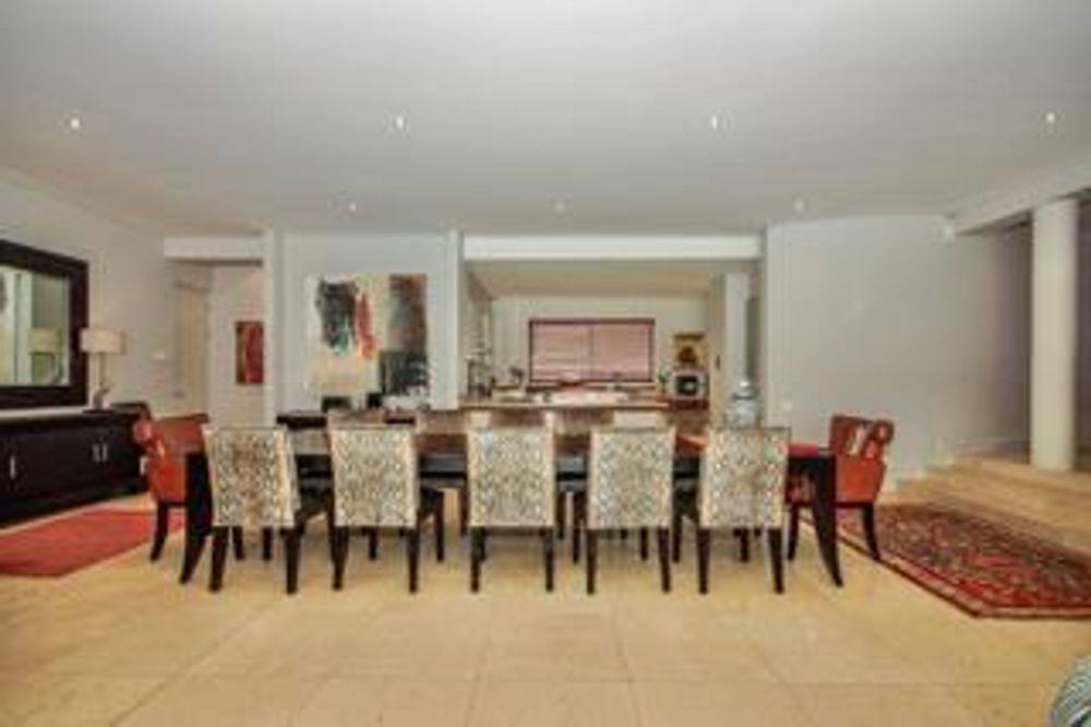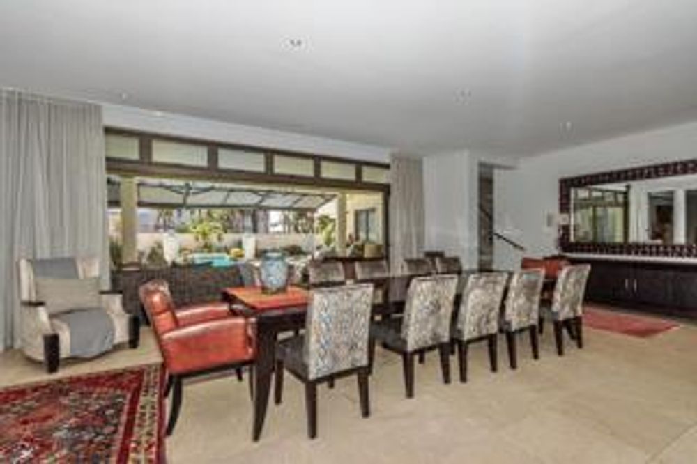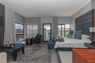 Luxury and rich ambience welcome you into this seaside double-storey guest house, which is operating very successfully. With rooms named Marakech, Mombasa, Antalya, Jaipur, Zanzibar, India and Tanah Lot, one already knows this home is the perfect place to escape reality. The home does have commercial use rights. A double-volume entrance foyer with a Creme-Marfil marble-tiled staircase sets the scene for the space and opulence to follow. An extra-large 12-seater dining area overlooks the kitchen and opens to a large undercover north-facing pool patio. This has a retractable awning for comfort. A large area comprising a TV room with a gas fireplace and a large lounge with another gas fireplace is ideal for a conference facility, should one want to continue operating the home as a guest house. This area also opens up onto the pool area. The kitchen is open-plan and has a separate scullery. Downstairs is the India Suite guest suite, which is comprised of two bedrooms and a shared bathroom. The floors of this section are bamboo. Upstairs includes an additional six bedrooms, all en-suite, and a large study. All bathrooms include a shower, bath, bidet and double basin. The rooms open onto balconies, some with views toward the Atlantic Ocean.