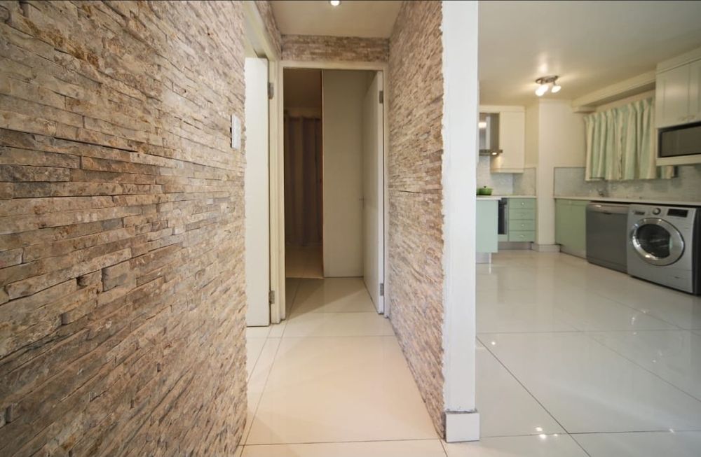 Moving through the granite mosaic featured passageway into the 2 spacious bedrooms, both featuring beautiful, tiled flooring and built-in cupboards. Main bedroom gets afternoon sun, and second bedroom faces the passage. The rooms have been secured with burglar bars and trellis door for added security. One under cover parking bay.