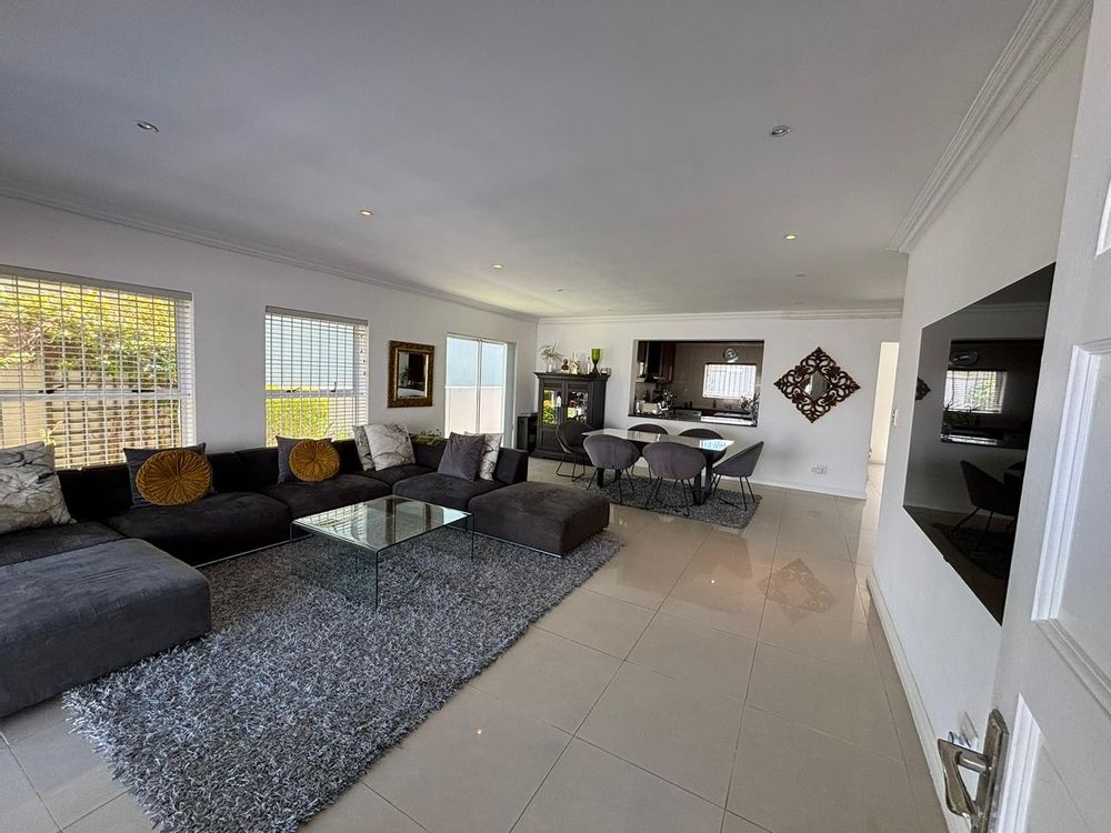 This fully furnished 3-bedroom home will be available for occupation from 1 February and is located in an exclusive, upmarket gated estate in Nautilus in Blouberg, just a short distance from the beach. The property is conveniently within walking distance of Eden on the Bay and Seaside Village Shopping Centres. The modern home offers quality finishes throughout and a low-maintenance garden featuring a wooden entertainment deck, sparkling swimming pool, outside built-in braai, and a private breakfast patio at the rear—ideal for relaxed outdoor living. The ground floor comprises spacious open-plan living and dining areas, with a separate lounge adjoining the fully equipped kitchen. Sliding doors lead out to the patio. A guest bathroom is located on this level, and the automated double garage provides direct access into the home.