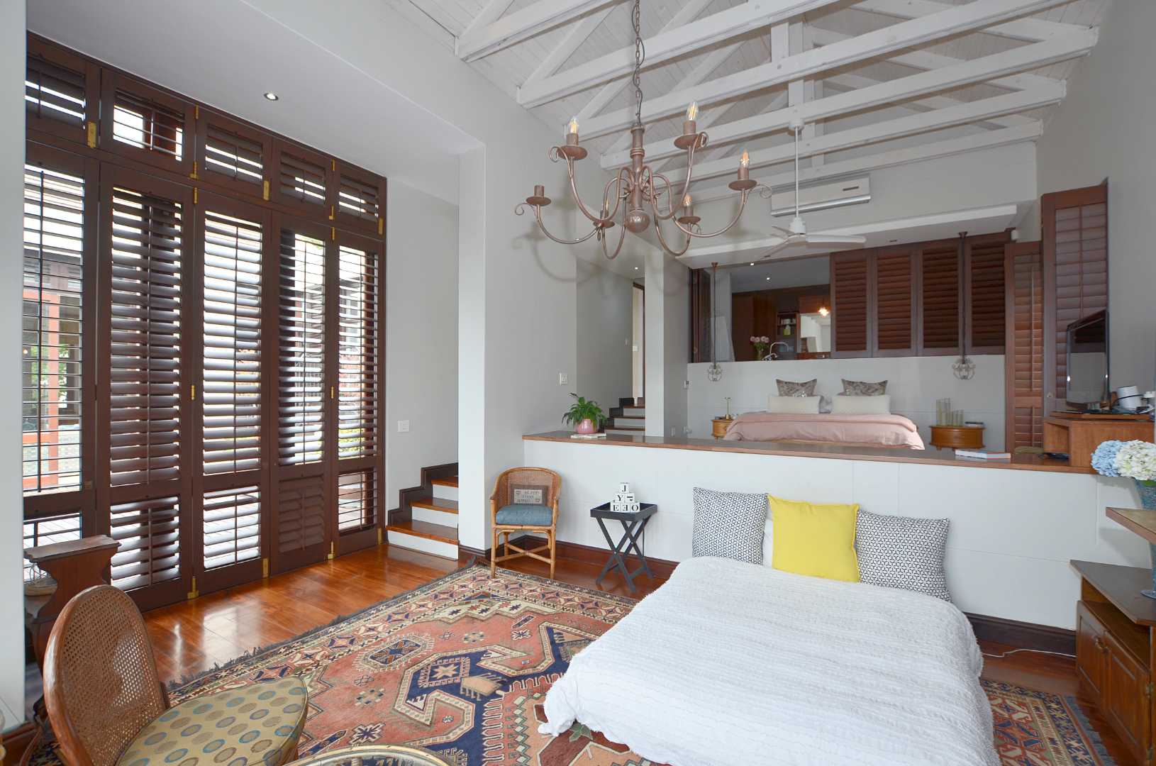 A fully self-contained one-bedroom flatlet with kitchenette and bathroom offers excellent potential for guest accommodation or extended family living.
