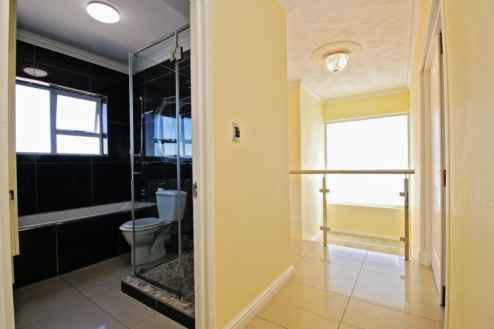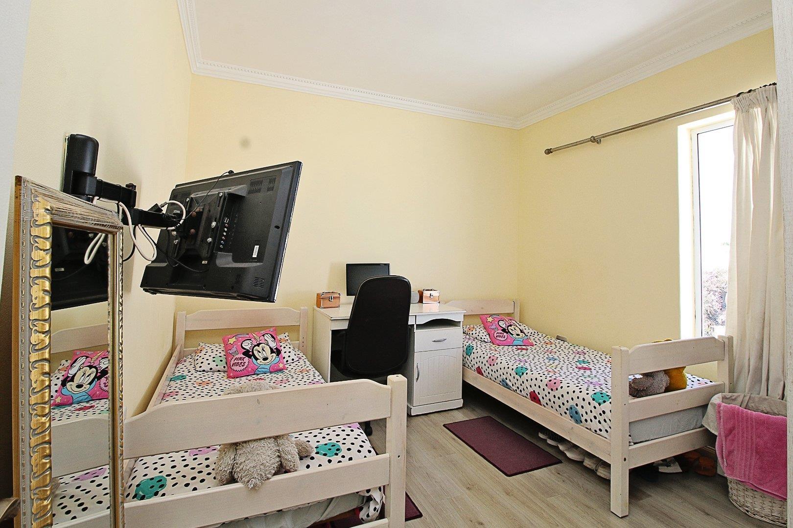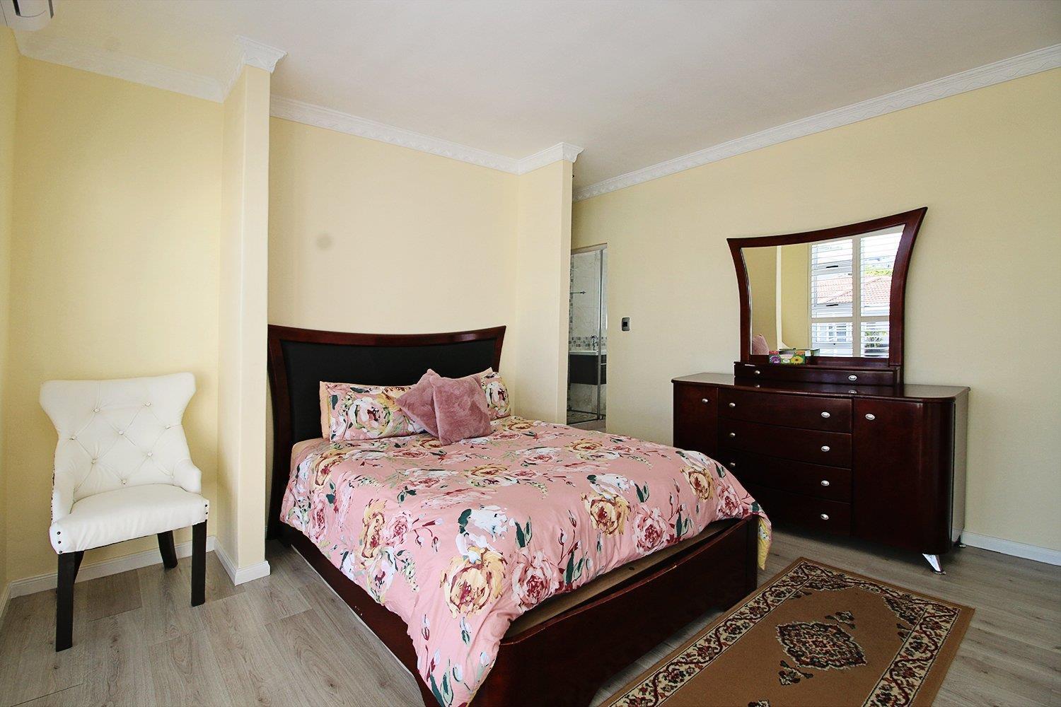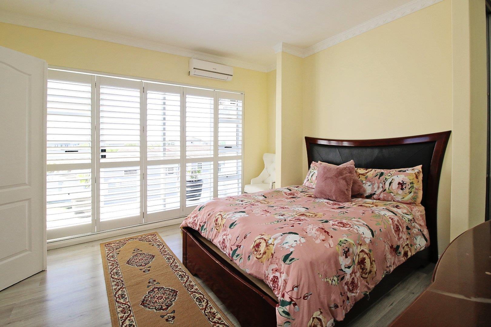 Upstairs, discover double doors to the double volume Master bedroom—a sanctuary of opulence. Laminated flooring, a walk-in dressing room, American shutters opens to sliding doors leading to a balcony with panoramic views. Luxurious en-suite bathroom boasts both a shower and a bath. Two additional double bedrooms, one boasting another private balcony, your kids bedroom allows for space for kids to play. Additional full family bathroom and linen cupboard for convenience.