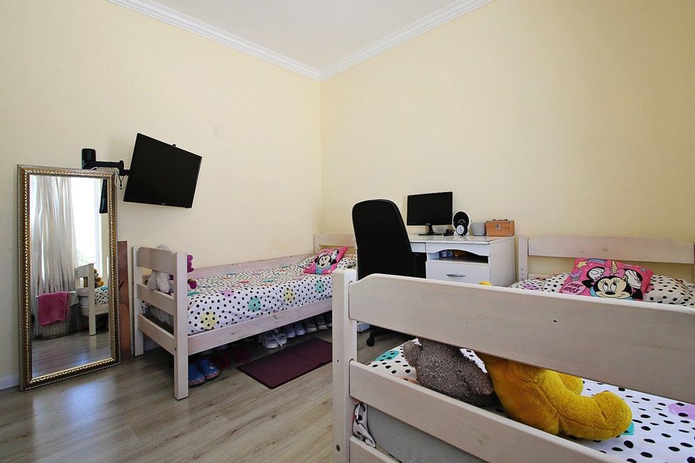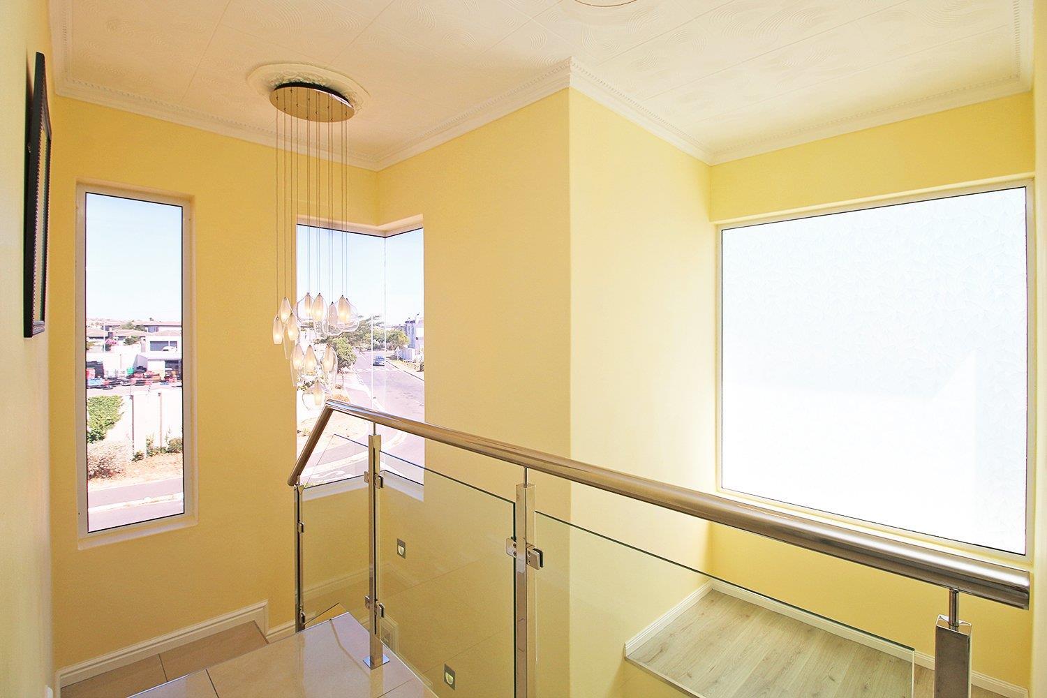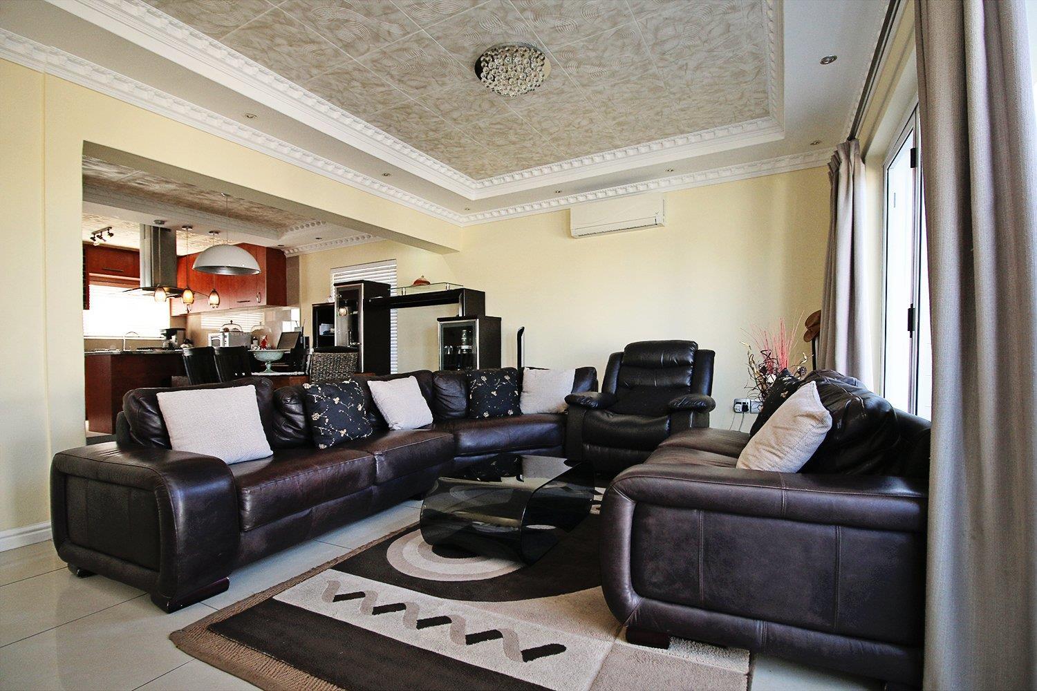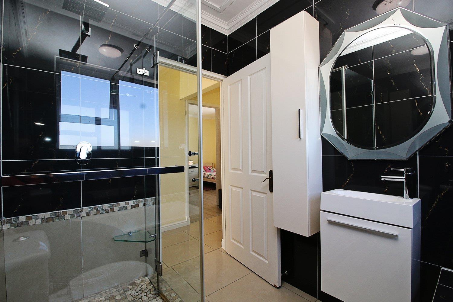 Upstairs, discover double doors to the double volume Master bedroom—a sanctuary of opulence. Laminated flooring, a walk-in dressing room, American shutters opens to sliding doors leading to a balcony with panoramic views. Luxurious en-suite bathroom boasts both a shower and a bath. Two additional double bedrooms, one boasting another private balcony, your kids bedroom allows for space for kids to play. Additional full family bathroom and linen cupboard for convenience.