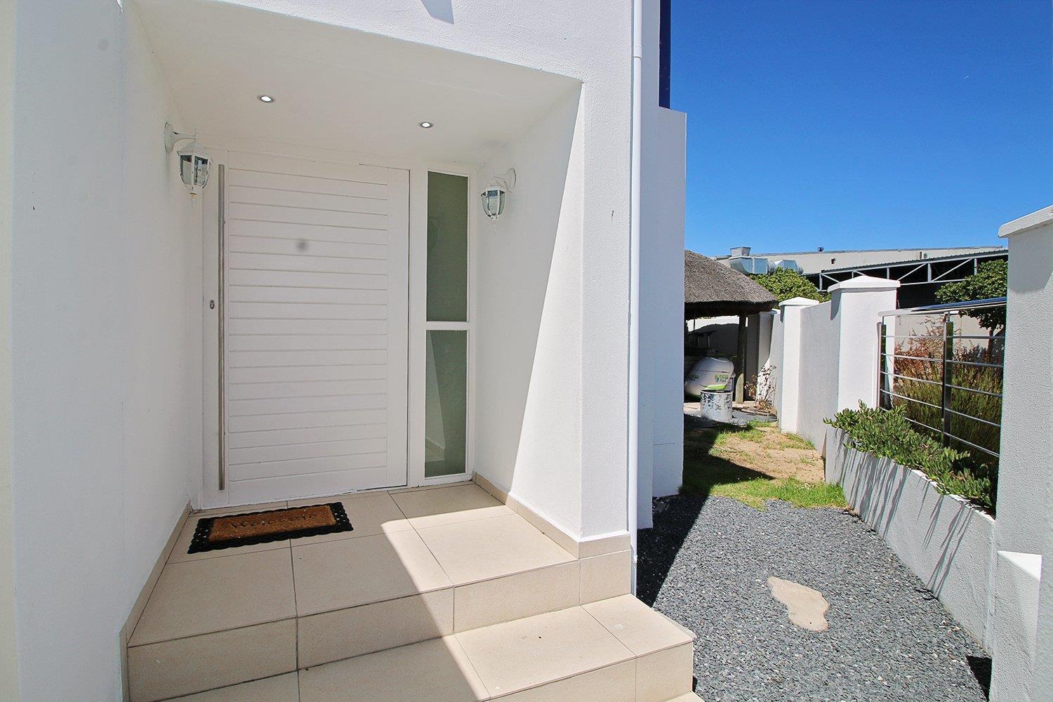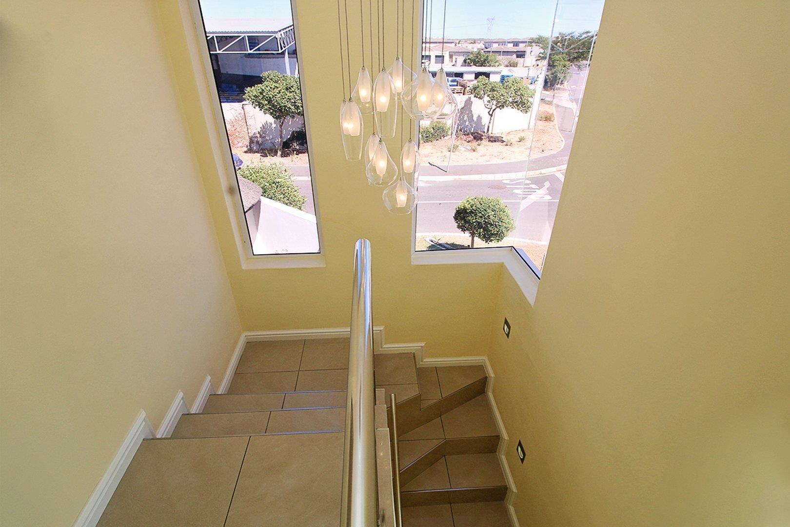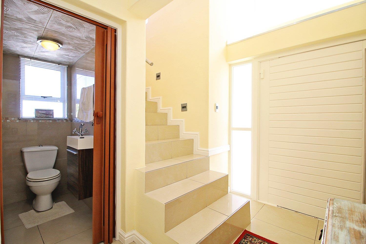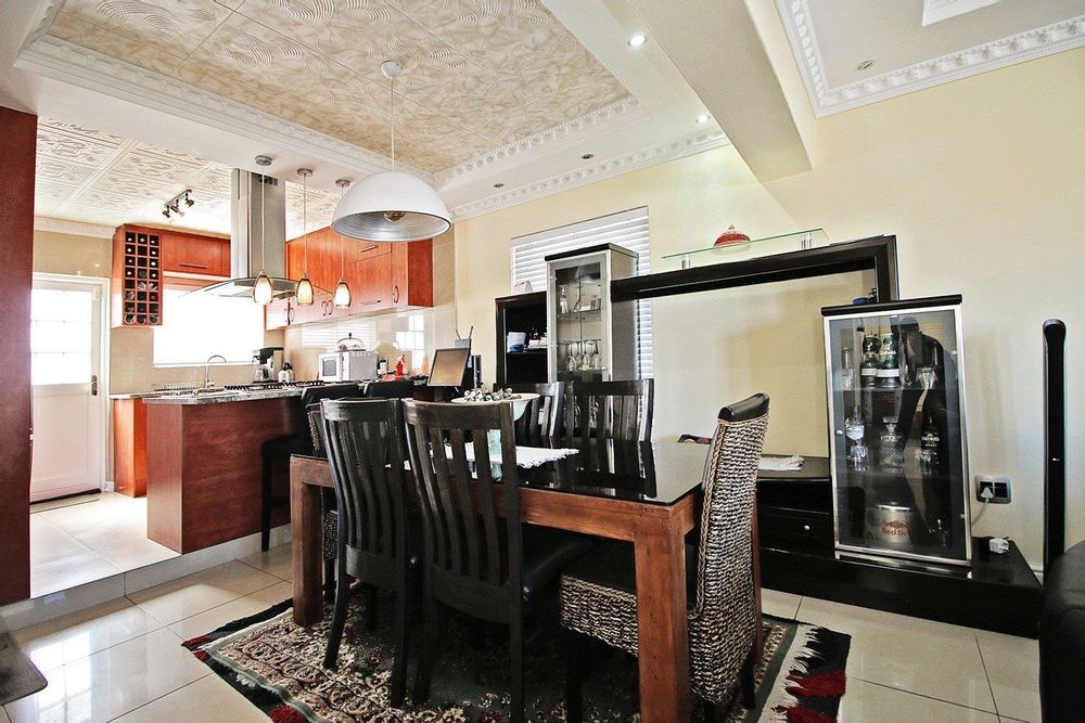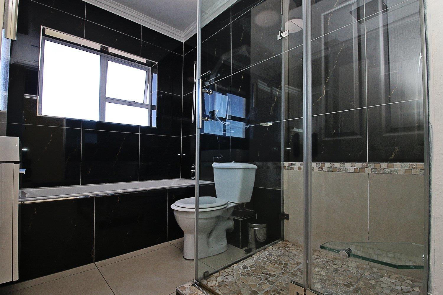Downstairs, be greeted by a fully-fitted kitchen that effortlessly combines style and practicality, boasting both gas and electric hobs, an electric oven, and a sleek stainless steel extractor fan. Plumbed for one appliance, it seamlessly connects to the tiled open-plan dining and lounge area. But that's not all – step through stacking doors to a paved entertainment area featuring a charming thatched lapa and a built-in braai, creating the perfect backdrop for hosting outdoor gatherings. And for those yearning for a pool, fear not—plans are already approved! Guest bathroom for practicality, air conditioning, fiber connectivity, and a top-notch alarm system. The double garage, considerately plumbed for a second appliance, provides direct access into the home, while another secure parking area awaits behind gates.