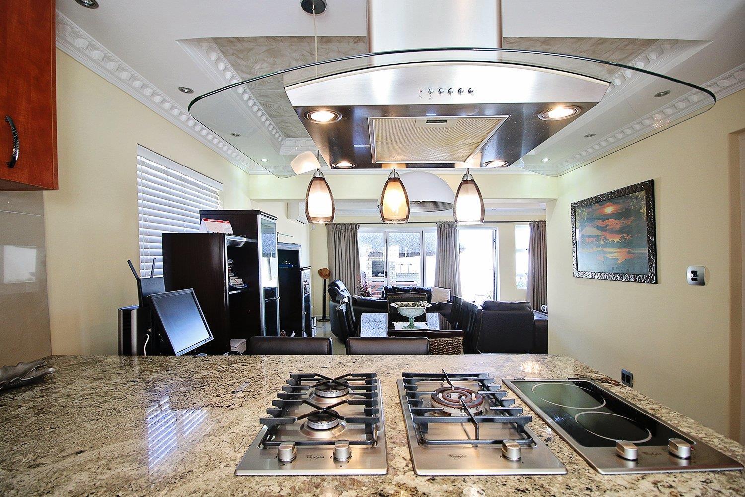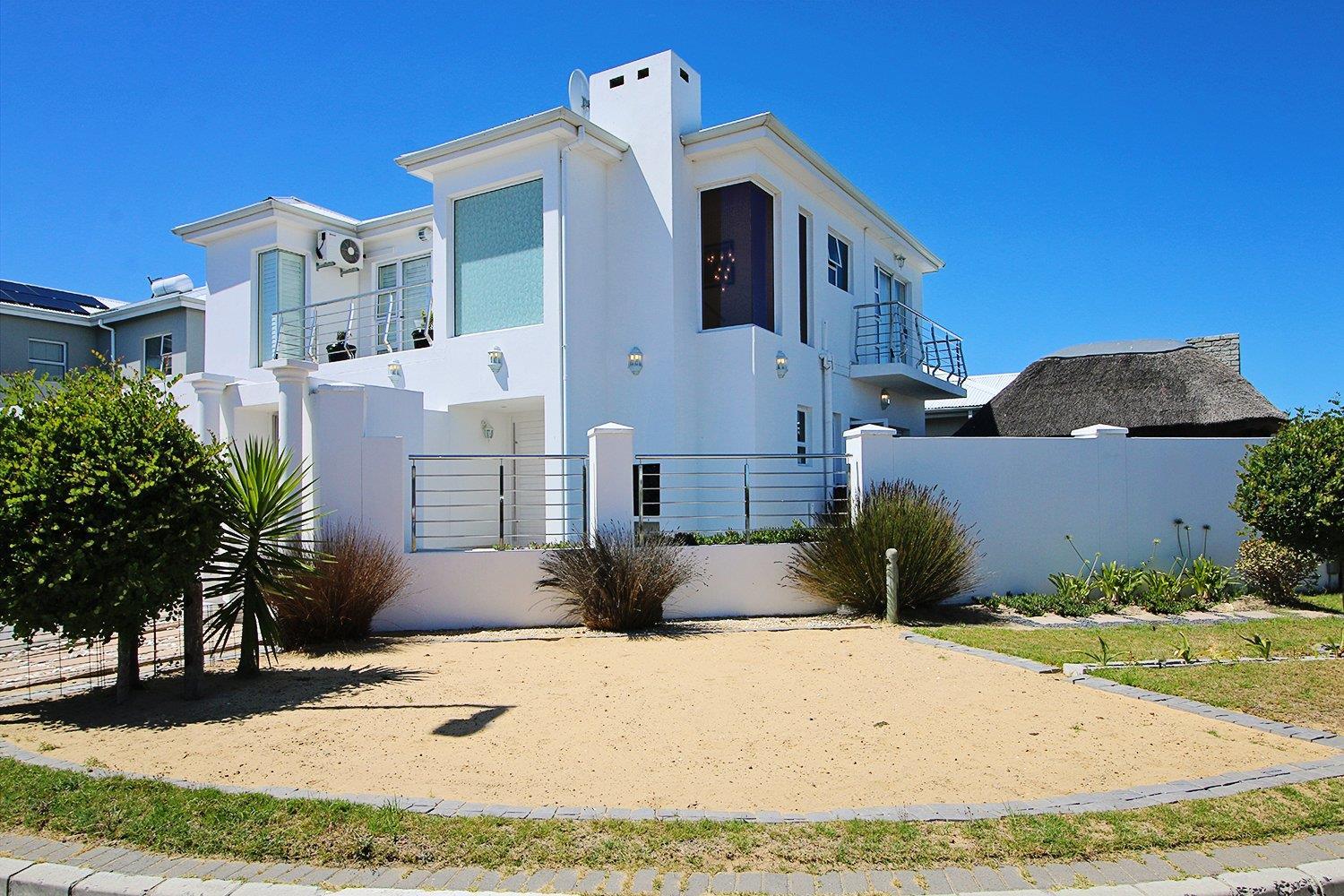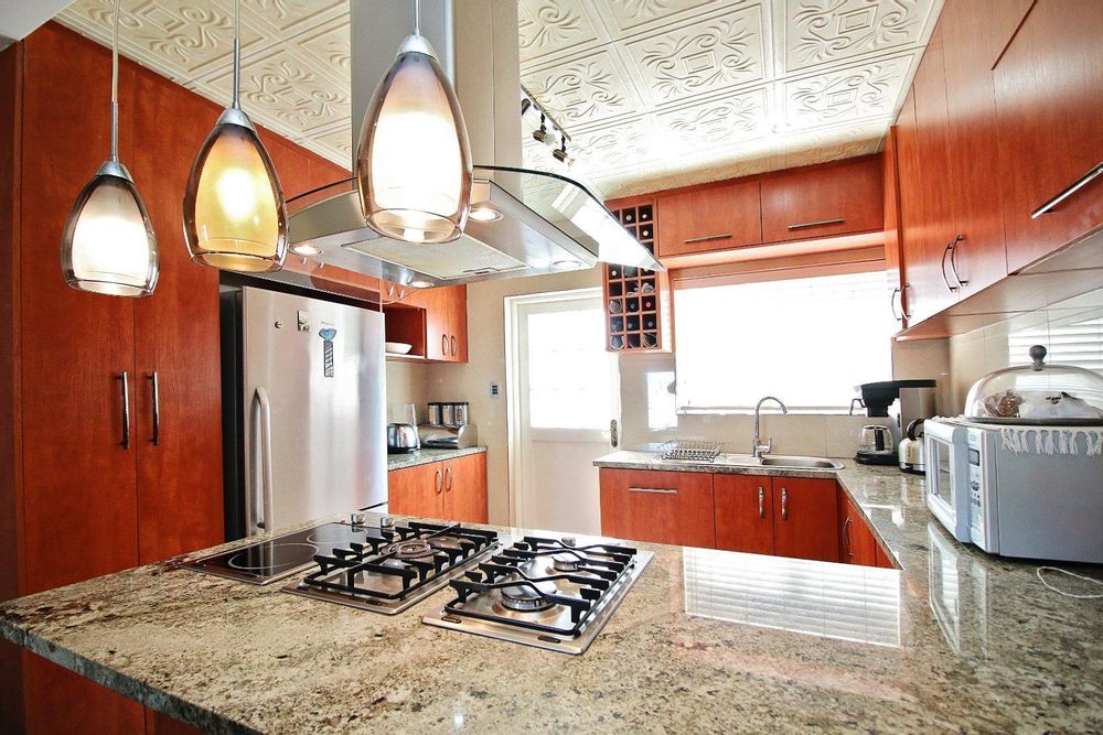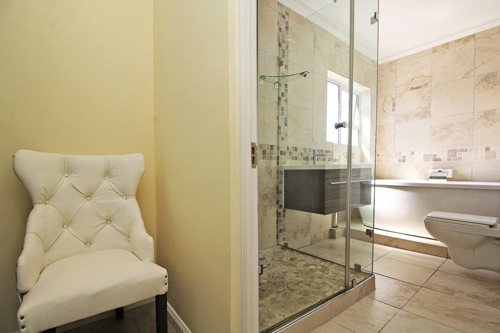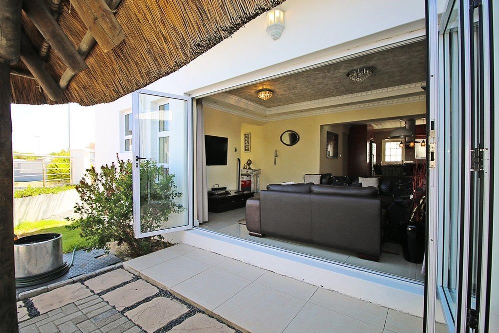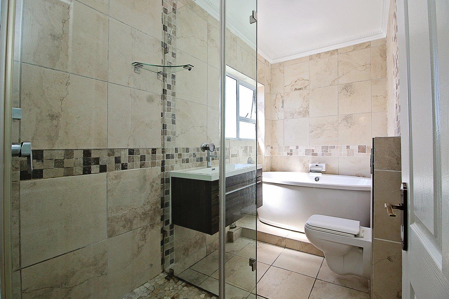 Downstairs, be greeted by a fully-fitted kitchen that effortlessly combines style and practicality, boasting both gas and electric hobs, an electric oven, and a sleek stainless steel extractor fan. Plumbed for one appliance, it seamlessly connects to the tiled open-plan dining and lounge area. But that's not all – step through stacking doors to a paved entertainment area featuring a charming thatched lapa and a built-in braai, creating the perfect backdrop for hosting outdoor gatherings. And for those yearning for a pool, fear not—plans are already approved! Guest bathroom for practicality, air conditioning, fiber connectivity, and a top-notch alarm system. The double garage, considerately plumbed for a second appliance, provides direct access into the home, while another secure parking area awaits behind gates.