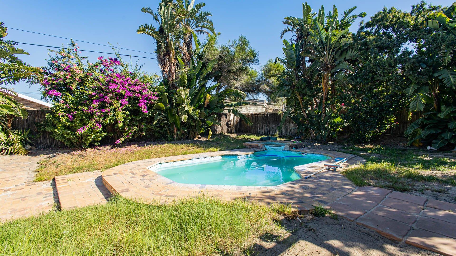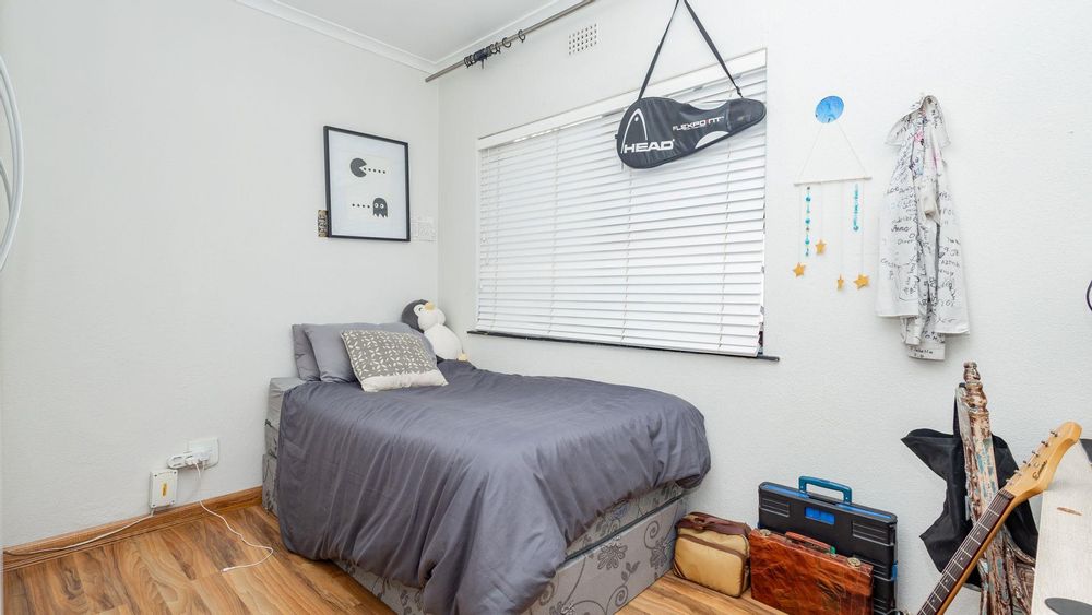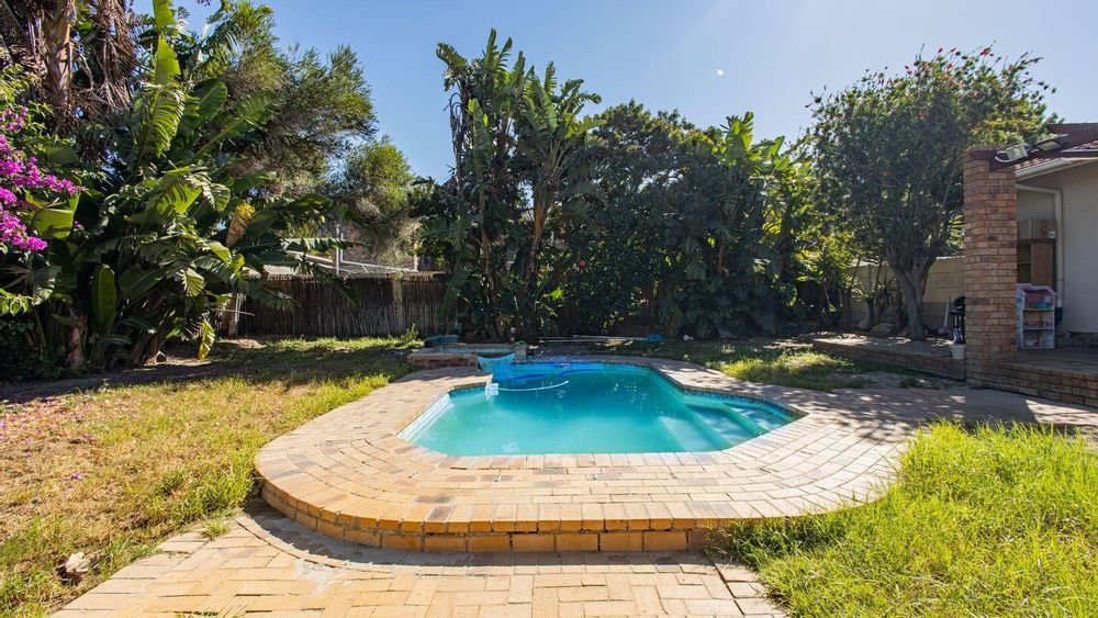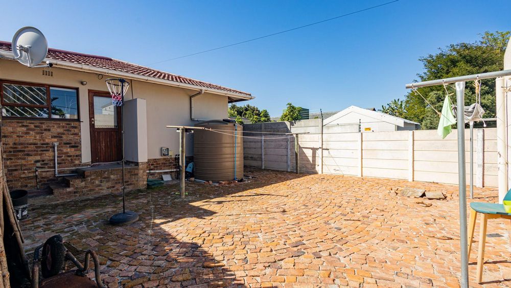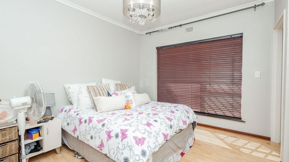Nestled in the picturesque suburb of Sunridge, this charming 3 bedroom, 2 bathroom home offers comfort, and versatility for the modern family. All bedrooms feature laminated floors and built-in cupboards, with the master bedroom easily accommodating a king bed with an ensuite. A full family bathroom with a bath and hand shower serves the remaining two bedrooms. The heart of the home is a well-appointed kitchen that flows into a relaxed dining/lounge area, beautifully finished with American shutters. Step outside and you’ll find your own private oasis—a sparkling pool, massive garden, with a built-in braai on the veranda. Borehole water allows for easy irrigation with sprinkler systems that run from JoJo tanks.