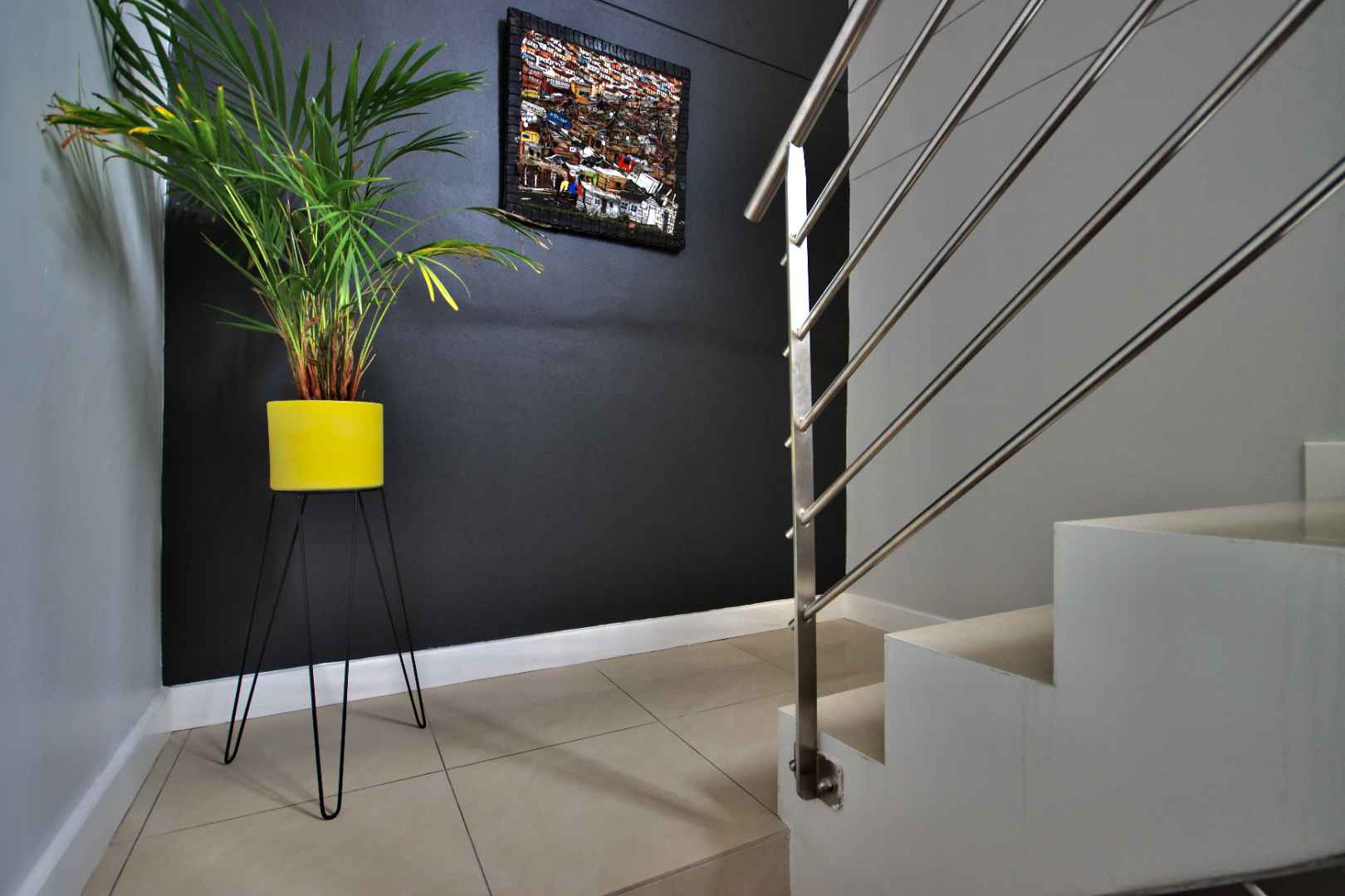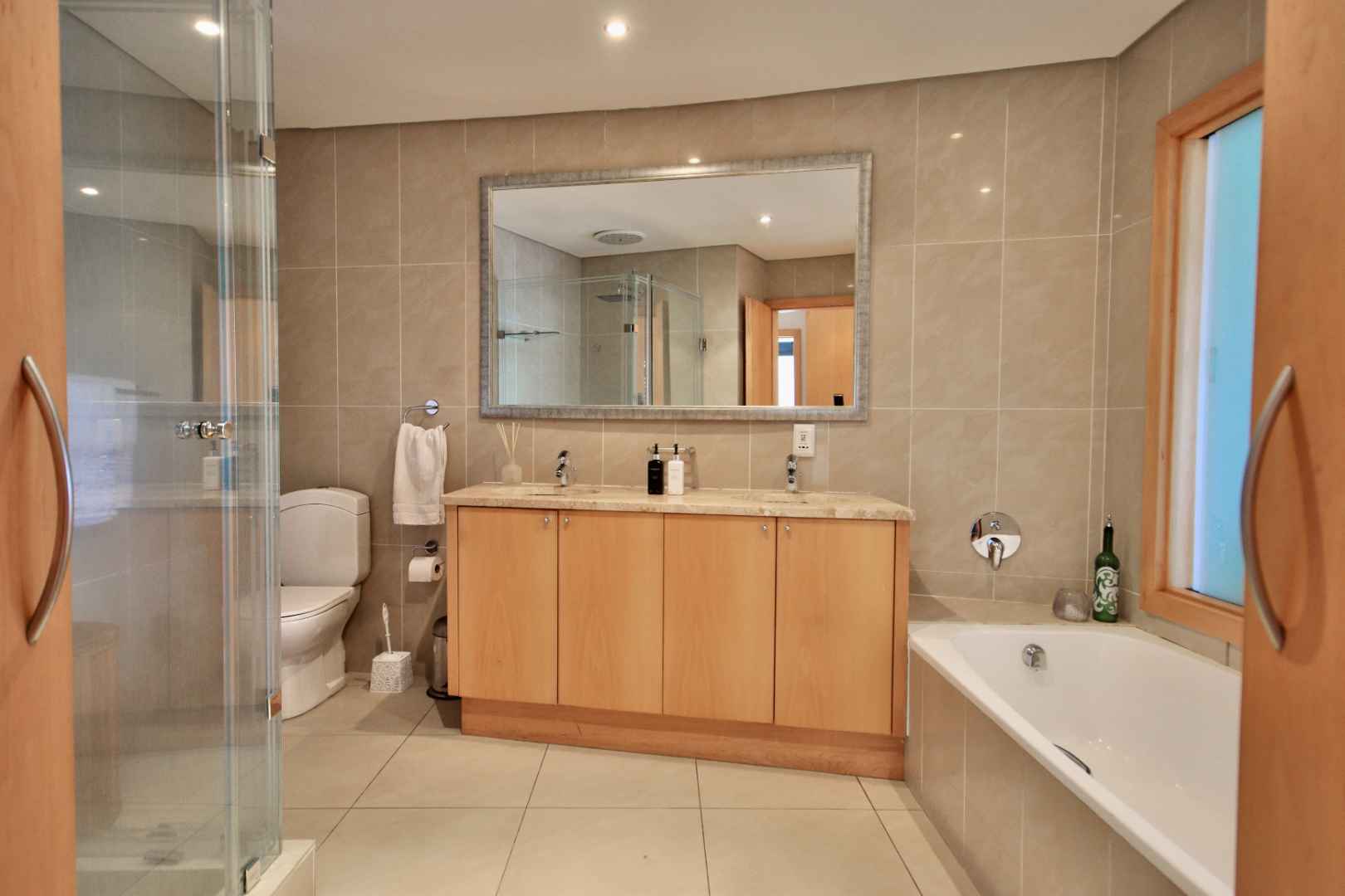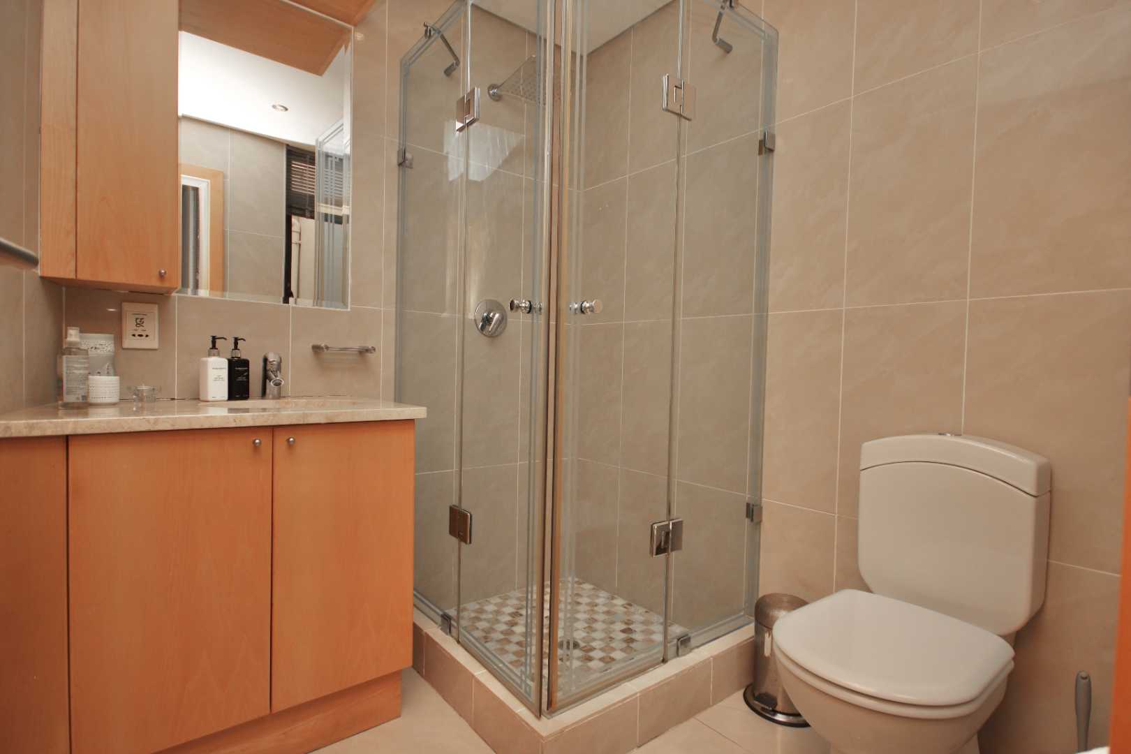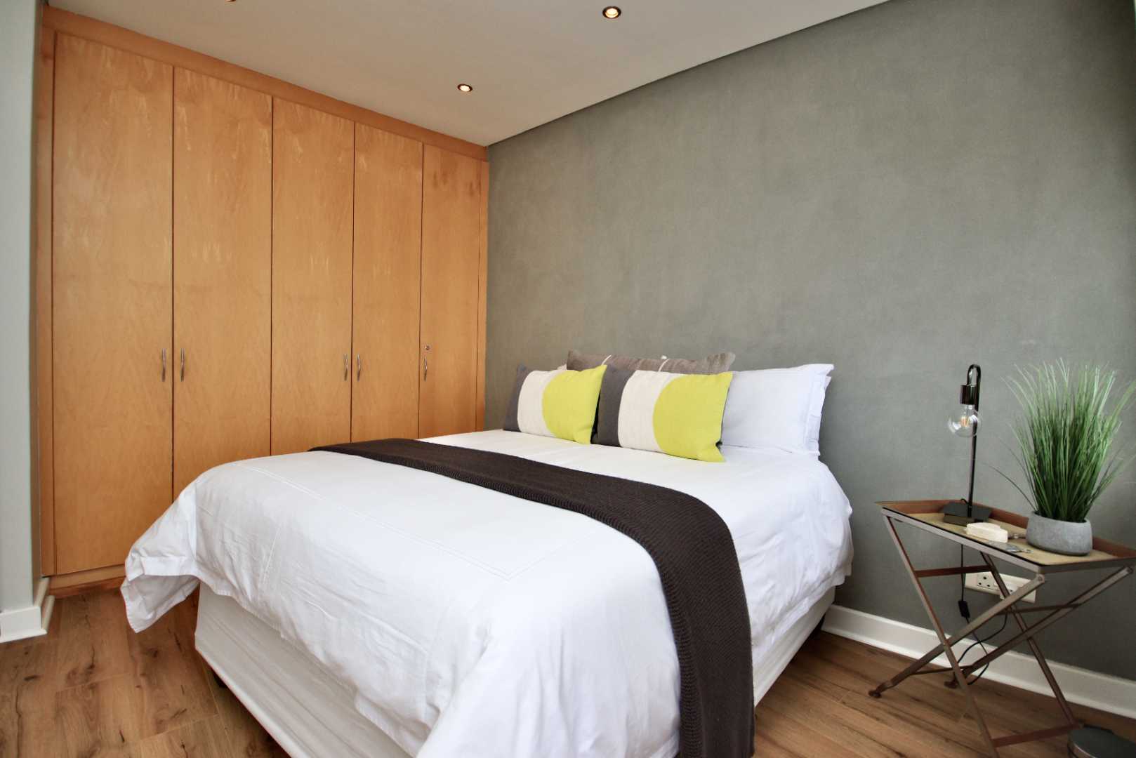 The living areas include a dining room and TV room that are open plan, creating a bright and spacious atmosphere. Living area opens to splash pool. Lots of light provided from small courtyard garden. The built-in braai and gas fireplace are perfect for entertaining guests or spending cozy evenings at home. The kitchen is equipped with a wash-up area and all the necessary appliances to make cooking a breeze. For even more stunning views, head up to the rooftop deck with a bar area, where you can soak up the sight of Table Mountain and the ocean.